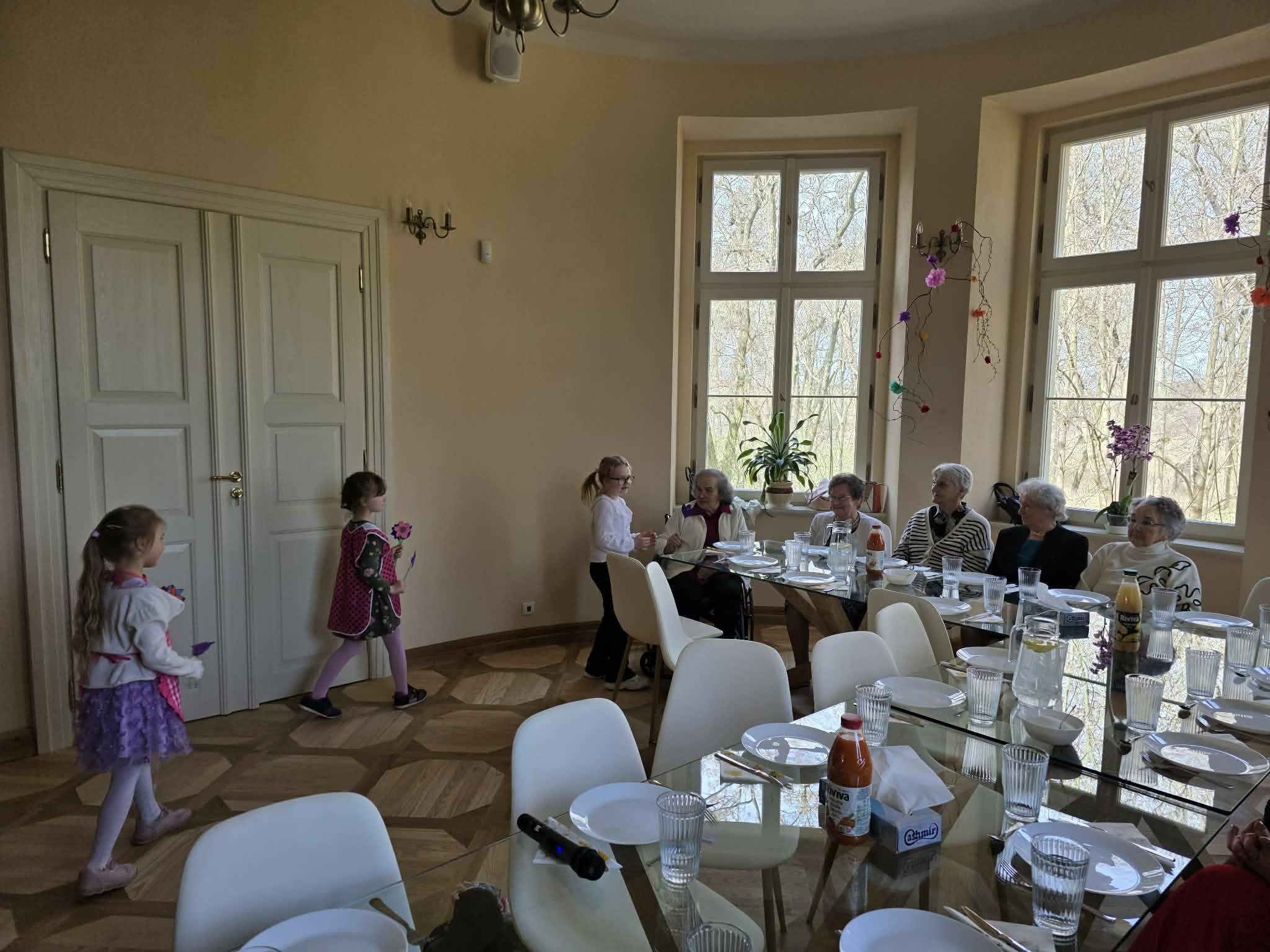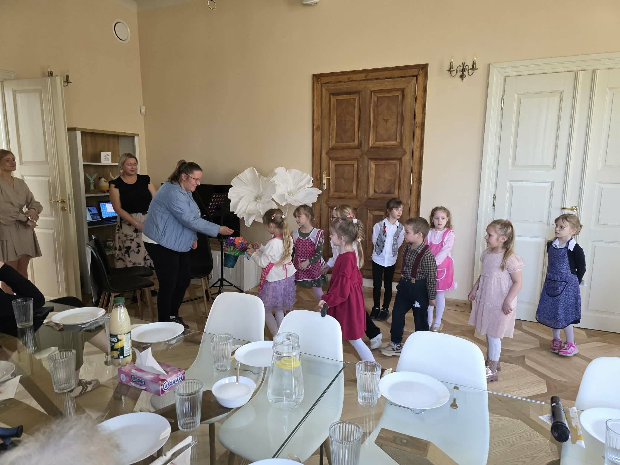 Nasze przedszkolaki miały przyjemność wystąpić podczas dzisiejszego oficjalnego otwarcia Dziennego Domu Pomocy w nowo wyremontowanym pałacu w Zbójnie. Po występie dzieci rozdały uczestnikom wiosenne kwiaty wykonane przez uczniów naszej szkoły.