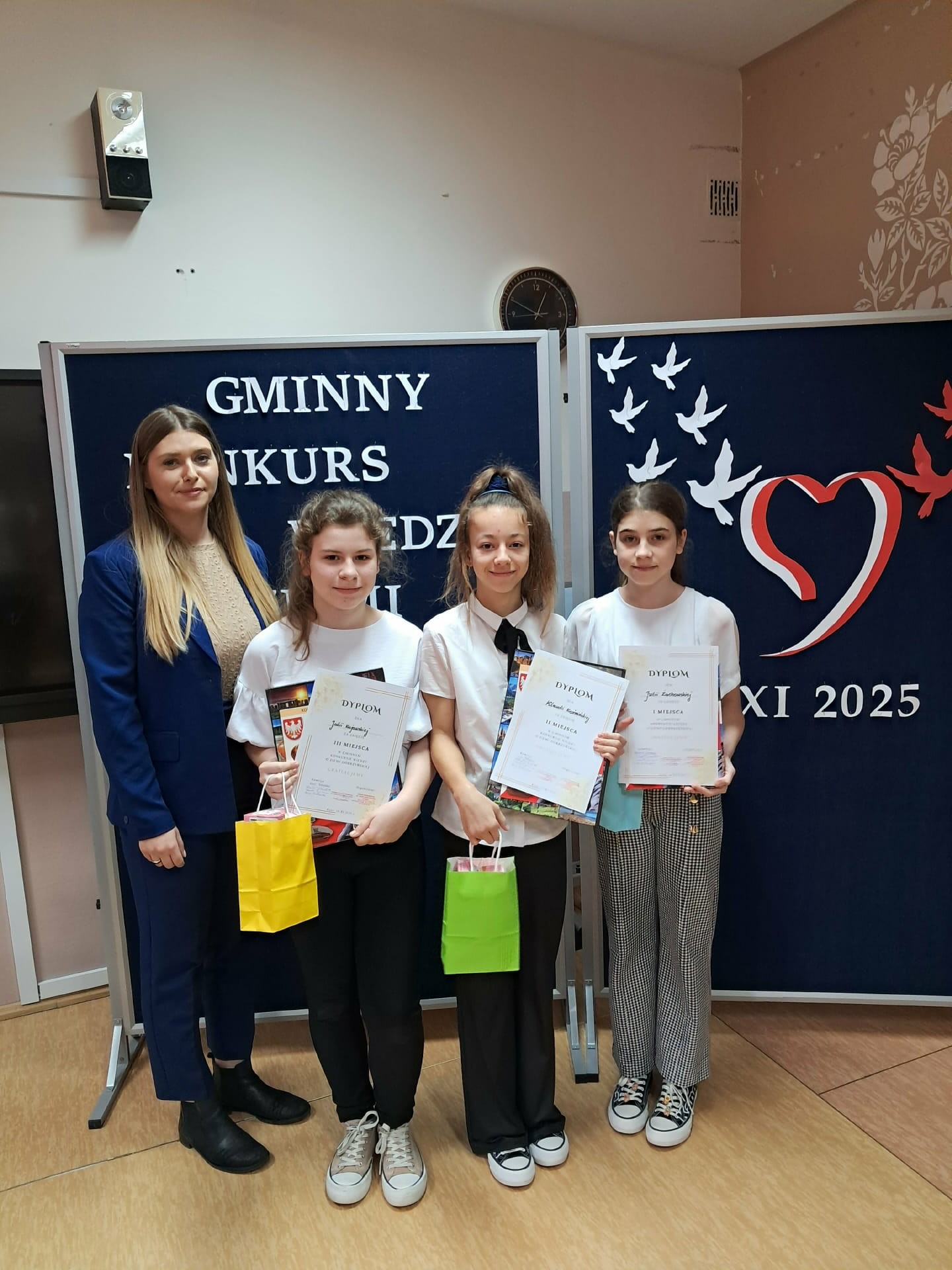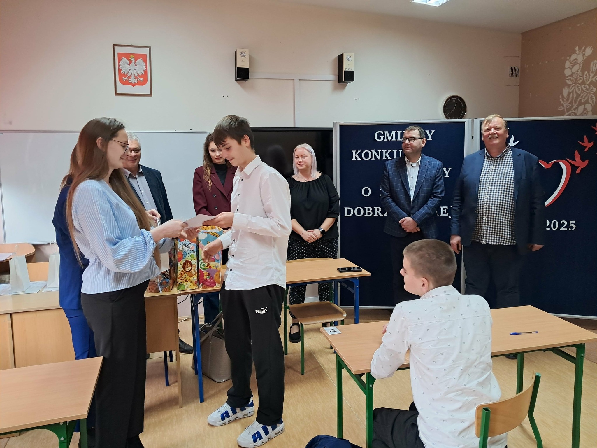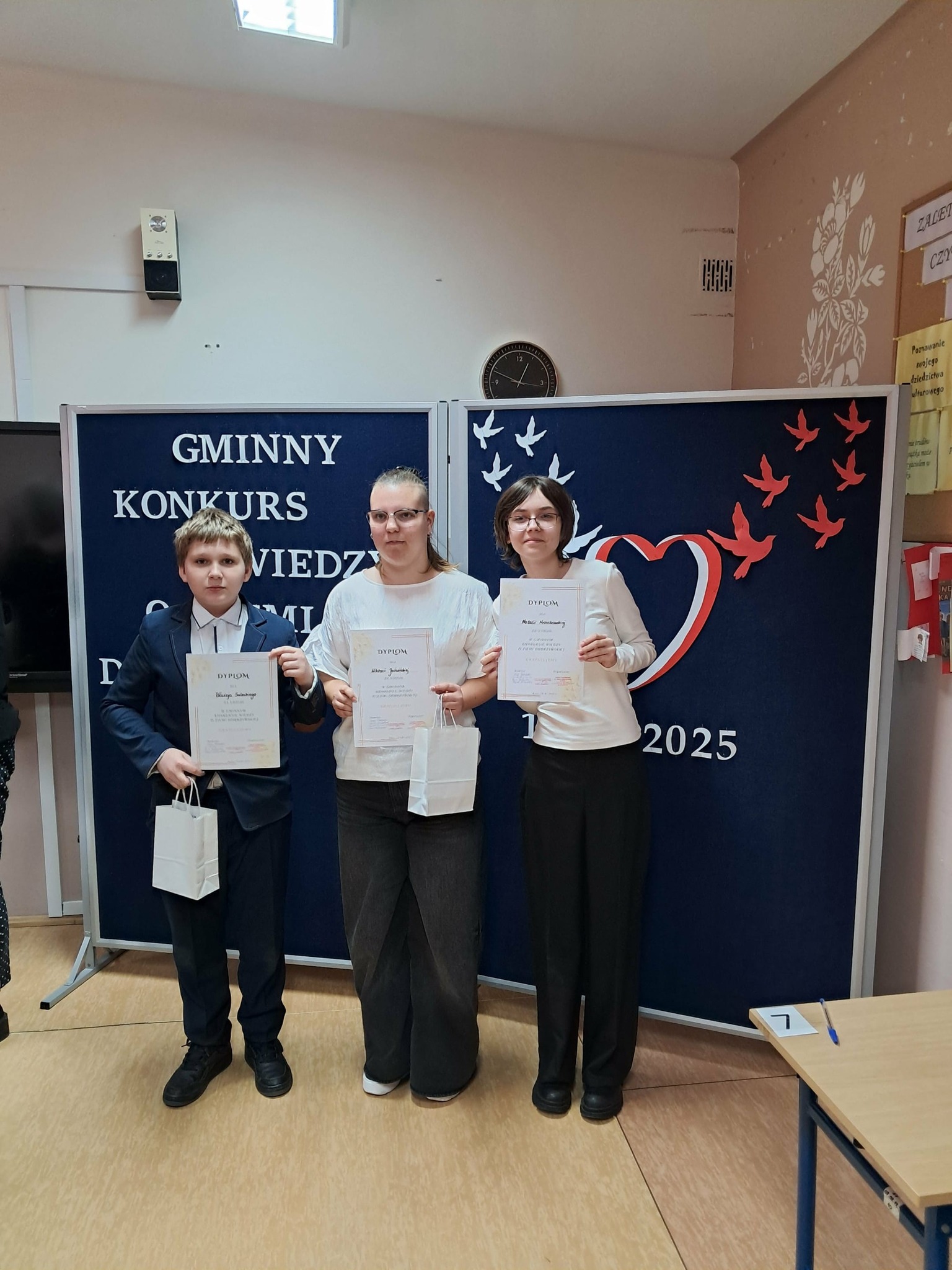 Dziękujemy wszystkim uczestnikom za poświęcony czas, energię włożoną w przygotowania i wspaniałą atmosferę, jaką stworzyliście podczas konkursu. Pamiętajcie, że sam udział w takiej rywalizacji jest cennym doświadczeniem i dowodem Waszej ciekawości świata. Wszyscy uczniowie biorący udział w konkursach zostali uhoronowani nagrodami.