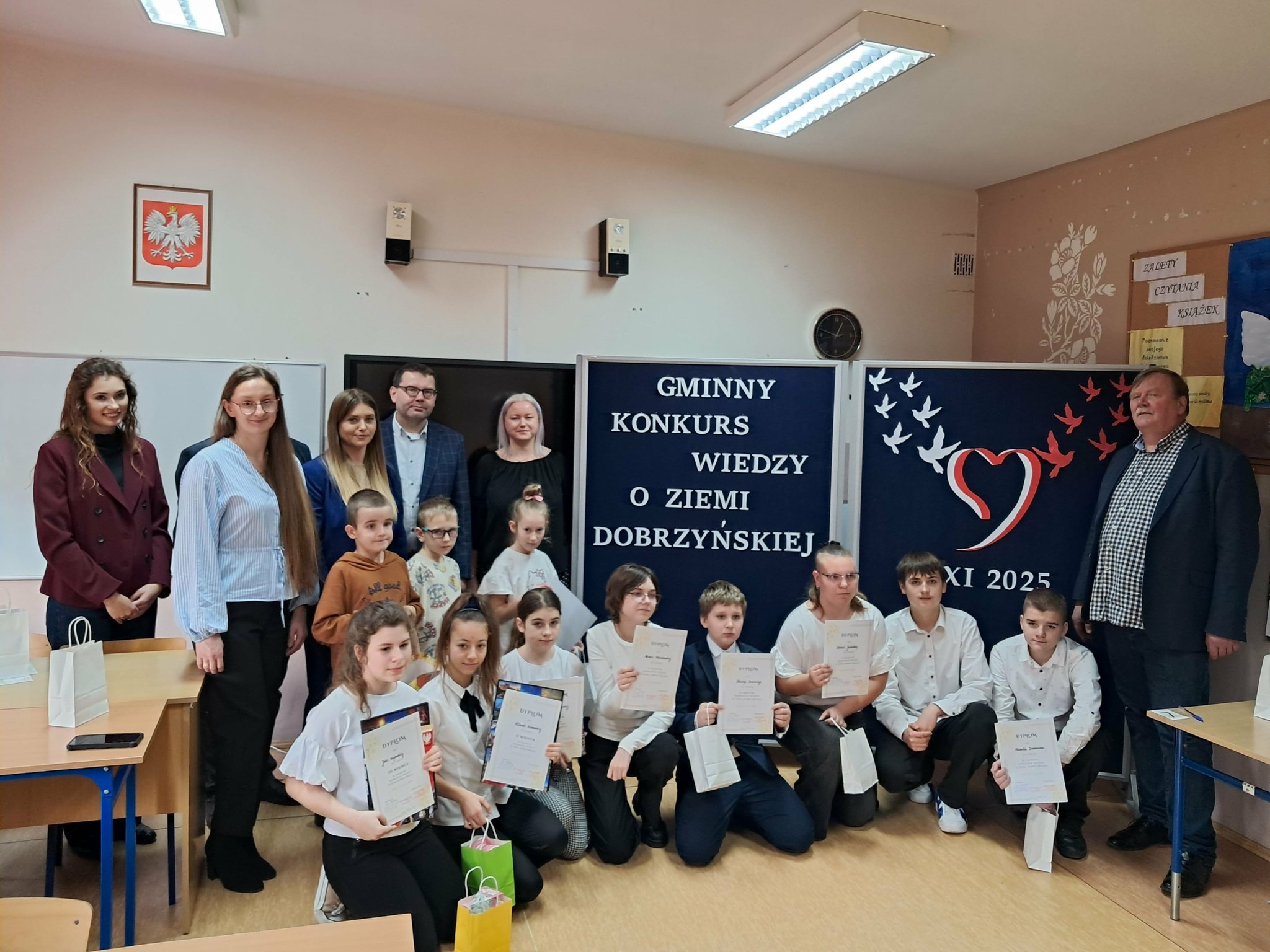 19 listopada nasza szkoła obchodziła 6. rocznicę nadania imienia Ziemi Dobrzyńskiej. Z tej okazji Pani Kinga Jastrzębska, Pani Ania Wesołowska oraz Pani dyrektor Barbara Brzezińska zorganizowały Gminny Konkurs Wiedzy o Ziemi Dobrzyńskiej oraz Gminny Konkurs Plastyczny - Zabytki Ziemi Dobrzyńskiej.